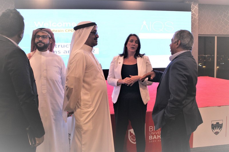 The regional director of the Australian Institute of Quantity Surveyors, Engineer Hassan Al Zabeel, opened the first event in Bahrain on June 20, 2023. With sponsorship of the British University of Bahrain the event held in Auditorium Hall. The main speaker, Paula Boast MBE Paula discussed Construction Claims and Alternative Dispute Resolutions under both Bahrain and MENA Law.