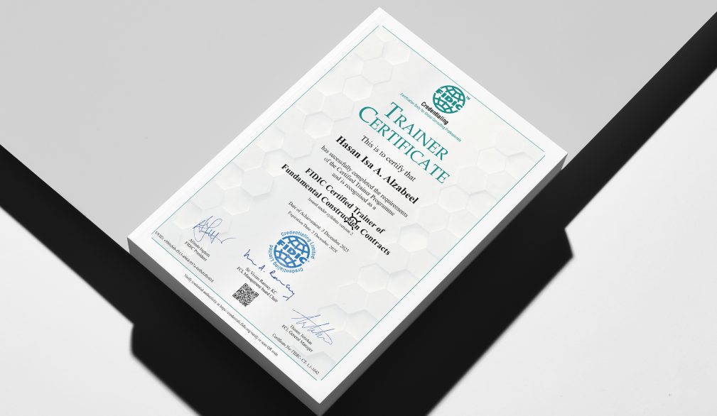 I am proud to announce that I have officially earned the FIDIC Certified Trainer – Fundamental Construction Contracts accreditation — becoming the first and only certified FIDIC contracts trainer from both Bahrain and the wider GCC region.